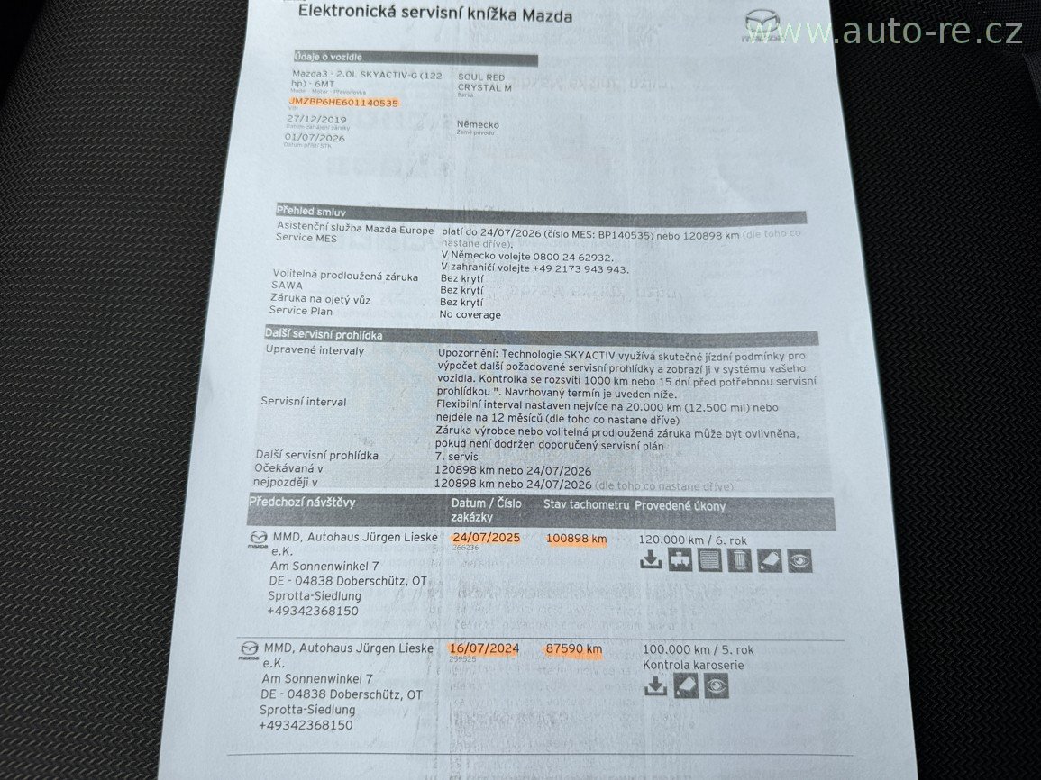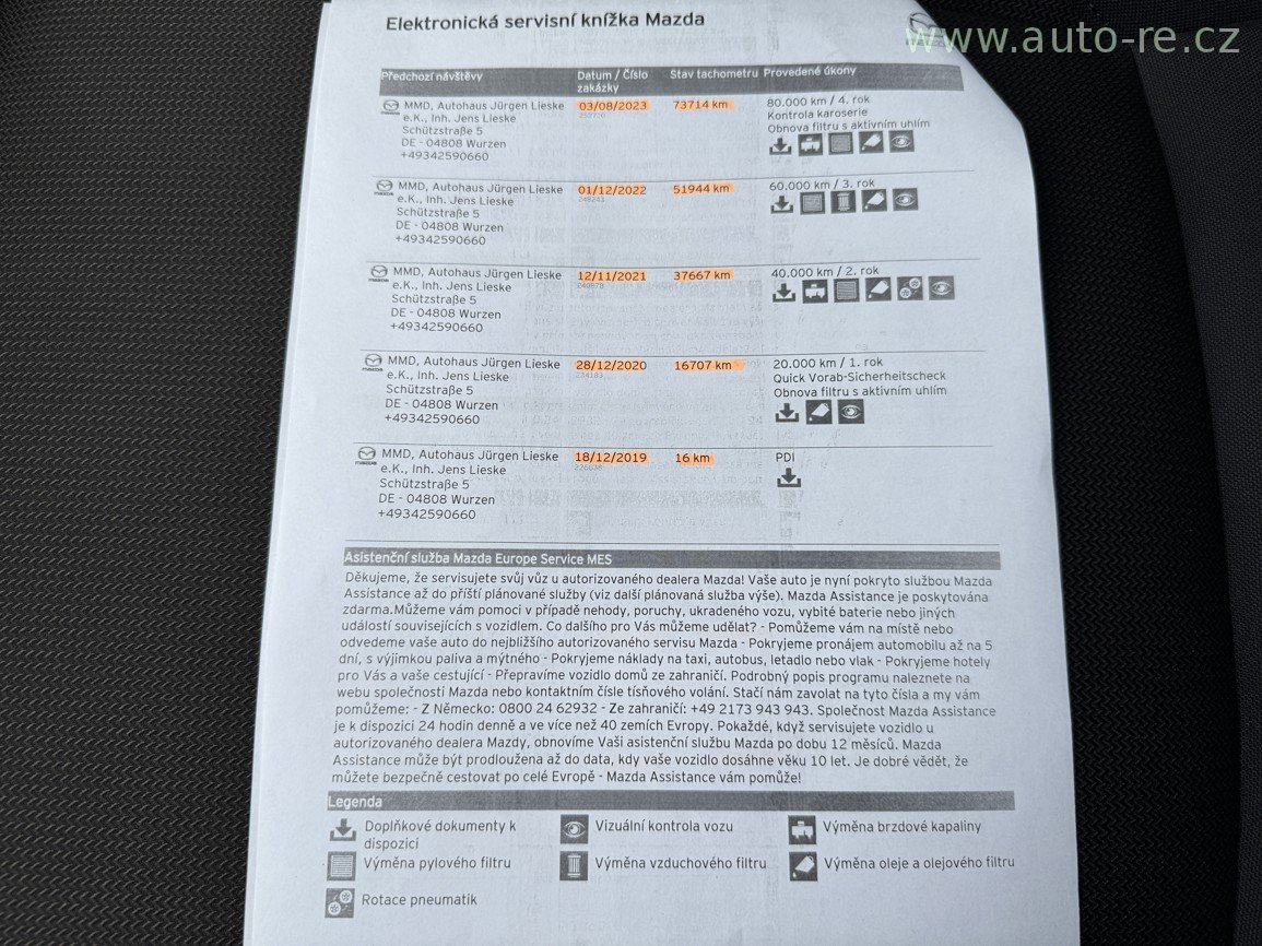 Model SELECTION - 90 KW - 122 PS - do provozu 27.12.2019 - 108 871 km - full LED světlomety - orig. satelitní navigace - automatická klimatizace - hlídání jízdních pruhů + mrtvého úhlu - adaptivní tempomat - repro Bose - bluetooth - parkovací kamera 360° - keyless-go - orig. AL. kola 18", letní pneu, elektronická servisní knížka, pravidelný servis pouze MAZDA, poslední záznam 7/2025 při 100 898 km. PERFEKTNÍ STAV !!! V případě zájmu Vám rádi sdělíme více informací na tel. 608 438 788. AUTO-RE