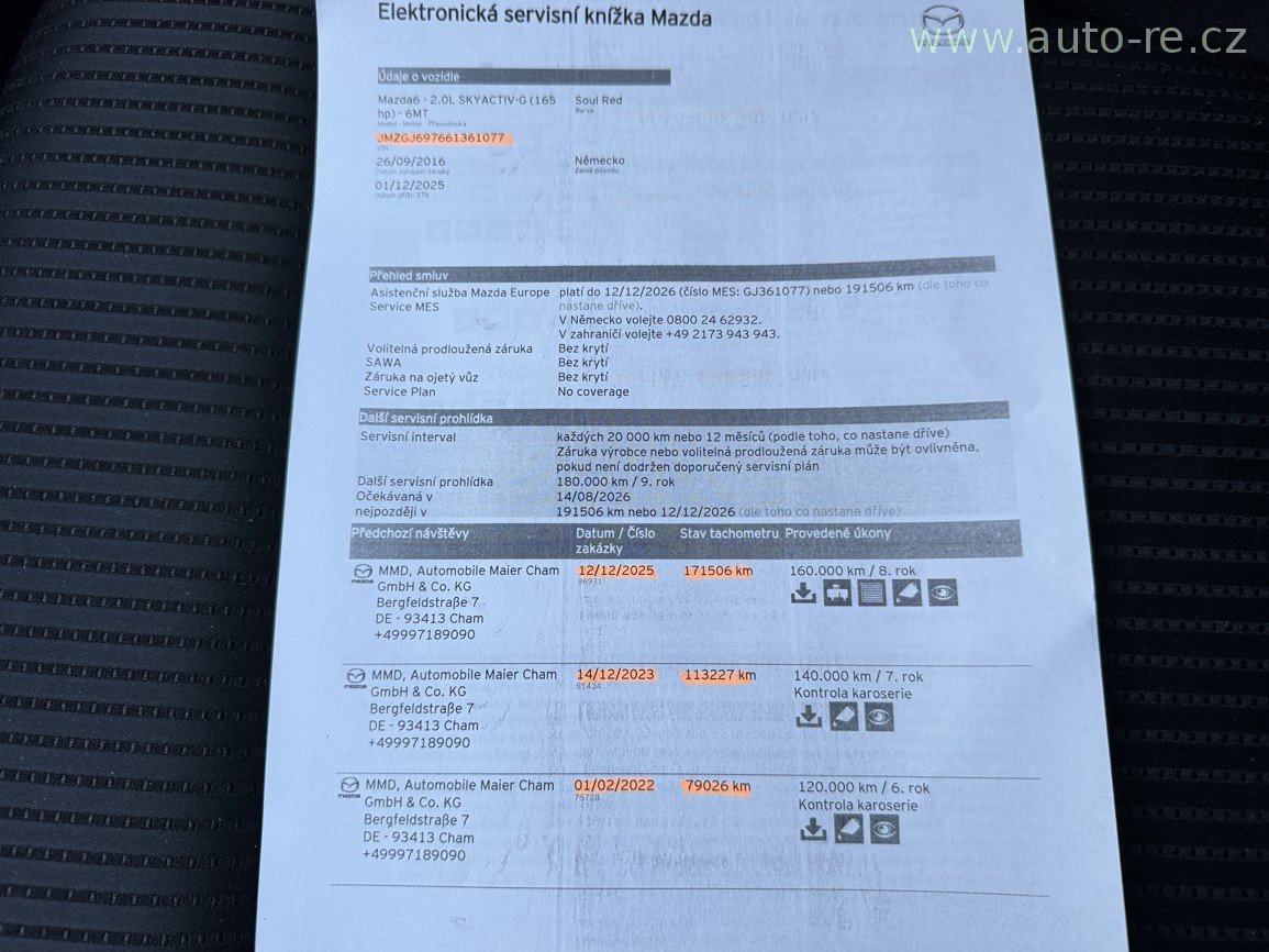 Model EXCLUSIVE - 121 KW - 165 PS - do provozu 26.9.2016 - full LED světlomety - automatická klimatizace - tempomat - bluetooth - hlídání mrtvého úhlu + jízdních pruhů - orig. AL. kola 17", zimní pneu, elektronická servisní knížka, pravidelný servis pouze MAZDA, poslední záznam 12/2025 při 171 506 km. PERFEKTNÍ STAV !!! V případě zájmu Vám rádi sdělíme více informací na tel. 608 438 788. AUTO-RE
