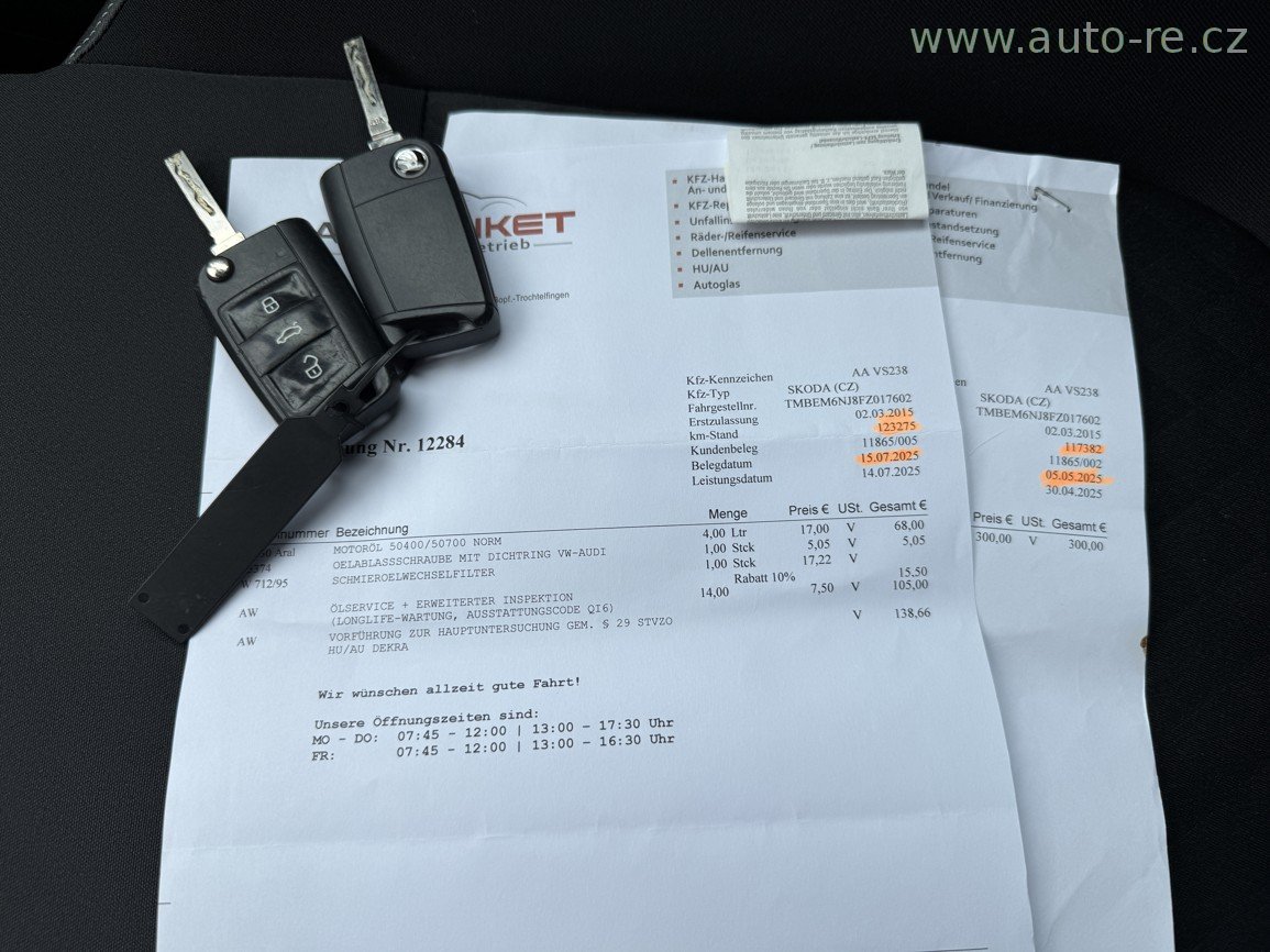Model AMBIENTE - 66 KW - 90 PS - do provozu 2.6.2015 - automatická klimatizace - bluetooth - tempomat - výhřev sedadel - orig. AL. kola 16", ZÁNOVNÍ LETNÍ PNEU, možnost dokoupení kompletní sady zimních kol, servisní knížka, pravidelný servis, poslední záznam 7/2025 při 123 275 km. NOVÉ PŘEDNÍ + ZADNÍ BRZDY. PERFEKTNÍ STAV !!! V případě zájmu Vám rádi sdělíme více informací na tel. 608 438 788. AUTO-RE
