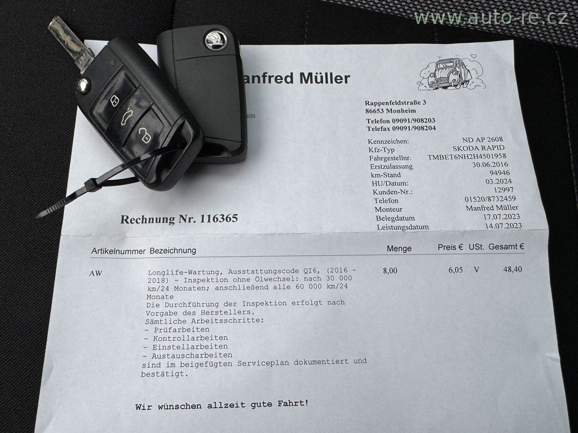 Model AMBIENTE - 92 KW - 125 PS - do provozu 30.6.2016 - automatická převodovka - orig. satelitní navigace - automatická klimatizace - tempomat - výhřev sedadel - 2* klíč, orig. kryty kol 15", zimní pneu, elektronická servisní knížka, poslední servis v zahraničí 10/2024 při 122 950 km, po výměně náplní 1/2026 při 144 960 km. PERFEKTNÍ STAV !!! V případě zájmu Vám rádi sdělíme více informací na tel. 608 438 788. AUTO-RE.